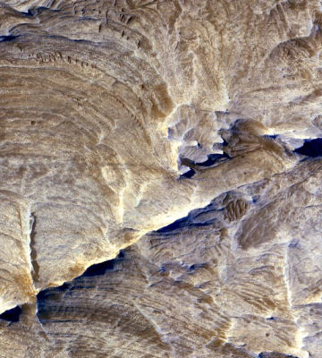 NASA’s Mars Reconnaissance Orbiter, which carries the most powerful magnifying camera yet sent to the Red Planet, captured the images in September 2006 as it flew over a Martian canyon called Candor Chasma.