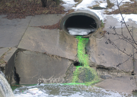 GREEN: THE NEW BROWN The dye in water exiting this Wisconsin storm drain was originally added to an upstream sewer pipe.