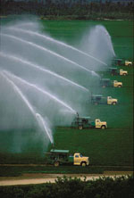 To supplement this precipitation, which often doesn’t occur when or where it’s needed, people are pumping vast amounts of water from aquifers, layers of sediment or soil that hold moisture in the spaces between their particles. In fact, people have pumped enough water from aquifers during the past century to measurably raise global sea levels. The removal of water from some types of sediments can cause them to compact, forever destroying some of their capacity to hold future rainfall.