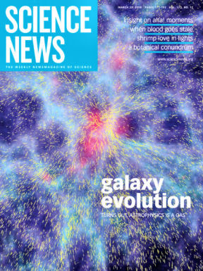 Moreover, researchers have found that black holes at galactic centers grow in lockstep with the mass of stars in that galaxy’s hub: The holes always seem to be one five-hundredth the mass of those stars (SN: 1/22/05, p. 56). That prescription means that the most massive galaxies house the heaviest black holes—exactly the ones that are most likely to have jets strong enough to interrupt star formation.