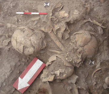 These graves probably held the victims of warfare, McMahon says. The bodies primarily come from young and middle-aged adults who apparently died at the same time. Many individuals lack hands and feet, possibly due to scavenging of the dead by rats and dogs on the battlefield.