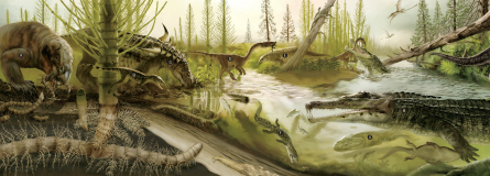 TRIASSIC NEIGHBORHOOD | Though some dinosaurs, such as a theropod called Coelophysis (D), did live in the late Triassic, they did not rule the landscape.