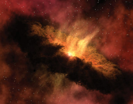 Even as it forms within a cloud of gas and dust, a nascent star develops a doughnut-shaped disk around it. This is the “protoplanetary disk” that might spawn planets. Using an infrared telescope to peer inside a dusty stellar womb 1,000 light-years from Earth, astronomers say that they have found evidence of such a disk in one of its earliest stages of development.