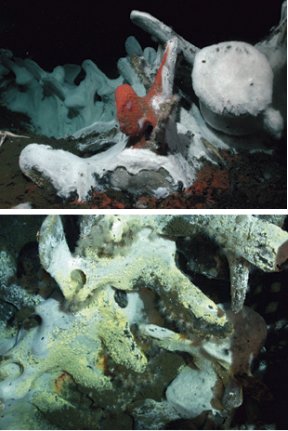 So far, researchers haven’t figured out how long a skeleton takes to become rocky, nutrientfree rubble. They’ve dated some of the natural whale falls to 70 to 80 years old, but these still bristle with chemoautotrophs.