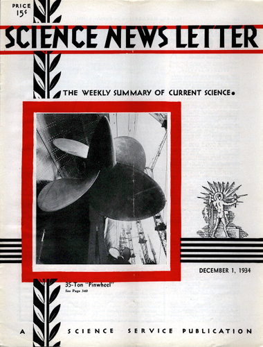 The cover illustration of Science News Letter this week is the striking view of one of the four great propellers that will drive the new British Cunard-White Star liner Queen Mary.