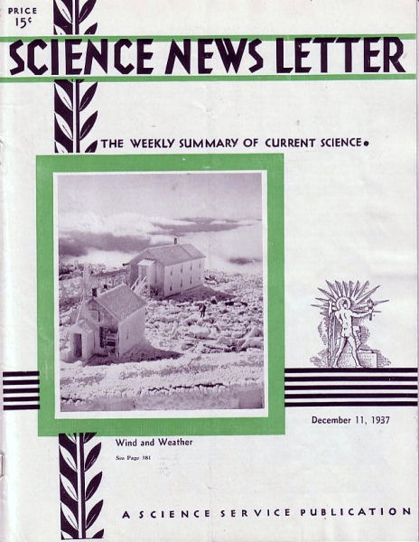 The observatory wants to take no chances of being blown away if another 200 mile-an-hour wind comes along! In such a wind in April 1934, the Stage Office danced about as much as its heavy chains would permit, and its walls now and then bellowsed in and out. The pressure inside the building varied between gusts by 0.2 inch on the barometer. This is the equivalent of a change of pressure of a ton on the surface of the building in the course of a few seconds.