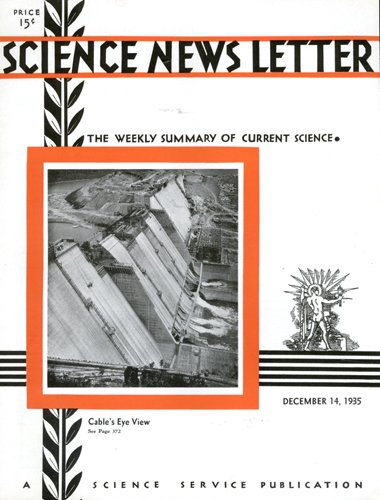 Suspended high in the air from the cable-way, the photographer looked down on the view of Norris Dam that appears on the front cover of this week’s Science News Letter.