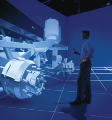 For these types of engineering studies, CAVE technology can save time and money by enabling designers to test their ideas before actually building anything. Today, every major car company and some airplane builders do vehicle design using CAVEs or less-elaborate systems that run on single walls or even a tabletop, says Jeff Brum, a product manager at FakeSpace Systems in Kitchener, Ont.