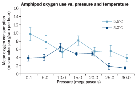 Even if shallow-water shrimps can acclimate to the pressure of the dark depths, there’s little chance that they’ll be heading for the seabed soon. Last year, Thatje and a colleague at Southampton used a deep-sea pressure tank to show that shrimplike animals called amphipods respond to extreme pressures better at high temperatures, such as those near the thermal vents where the amphipods normally live. The findings, published last December in PLoS ONE, suggest that temperature, pressure and other factors may work together in complex ways to constrain the habitats animals can call home.