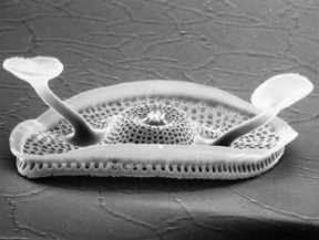 Resembling a small pillbox and lacking ornate features, the silica shell of T. pseudonana is “pretty dull,” says Hildebrand. However, he offers it as a model organism—the fruit fly of diatom research. Once researchers determine how shells are made in T. pseudonana, he says, they can move on to more-complex species.