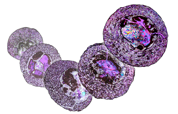 To observe the bones’ internal structure, the researchers sliced thin cross sections from some of the fossils and placed them under a microscope. When a bone fossilizes, it maintains the microscopic structure of cells and tissue, offering a snapshot in time of a developing embryo. By looking for differences inside bones of varying sizes, the scientists could piece together how embryos grew over time.