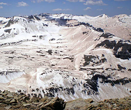 To explore the effects of dust build-up on snow, Steltzer and her colleagues forced snow to melt early on patches of northeast- and southeast-facing slopes above the tree line at Red Mountain Pass in Colorado’s San Juan Mountains. Typically several winter storms each year drop dust from the Colorado Plateau onto these slopes, and researchers mimicked the effect in May 2008 by adding black fabric or a heavy dusting of ground-up, local rock to snowpacks that were one to two meters deep.