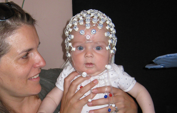 In the new study, 5-month-olds, 12-month-olds and 15-month-olds sat on their mothers’ laps while wearing an electrode-studded cap that measured electrical activity on the brain’s surface. The babies saw three scrambled images and a woman’s face, flashed on a computer screen for various amounts of time, accompanied by bell sounds for each image that created a simple melody to attract the infants’ attention.
