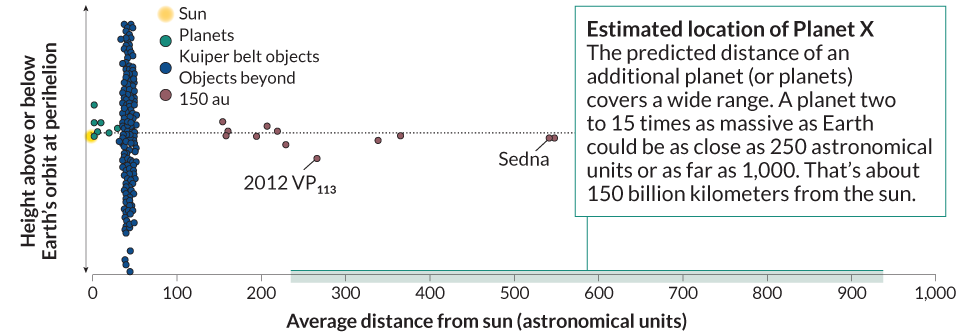 “That immediately piqued our interest,” says Sheppard. Could an unseen planet, a Planet X, be holding the orbits of all these far-out bodies in place?
