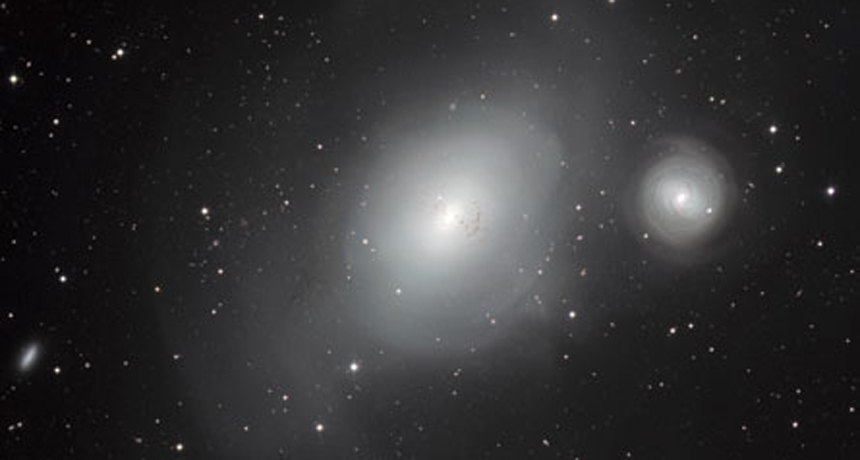 ALL FED UP NGC 1316 (left) has become the giant monster it is today because of collisions with other galaxies.