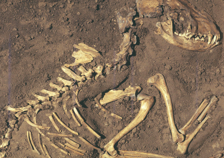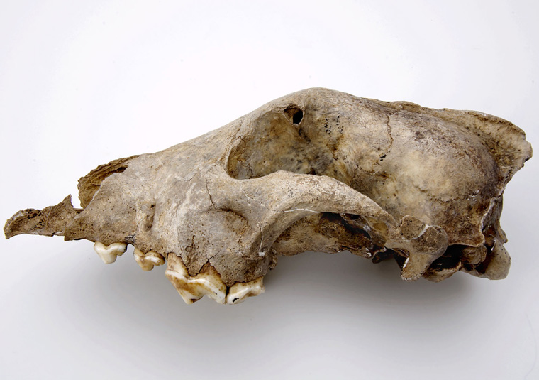 OLD DOGS Analysis of DNA from fossils, including this 26,000 year-old wolf skull found in the Trou des Nutons cave in Belgium, reveals that canines were probably first domesticated in Europe.