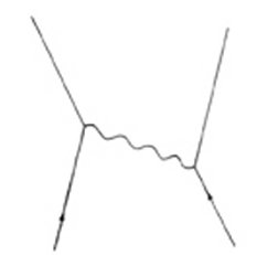 In the spread-eagle diagram, an electron appearing from the bottom right emits a photon of light, the wavy line. In response to firing off that photon, the electron recoils to the right. As the electron on the left absorbs the photon, it gets a momentum kick to the left. Voilà! The two particles, both with similar, negative electric charges, repel each other.