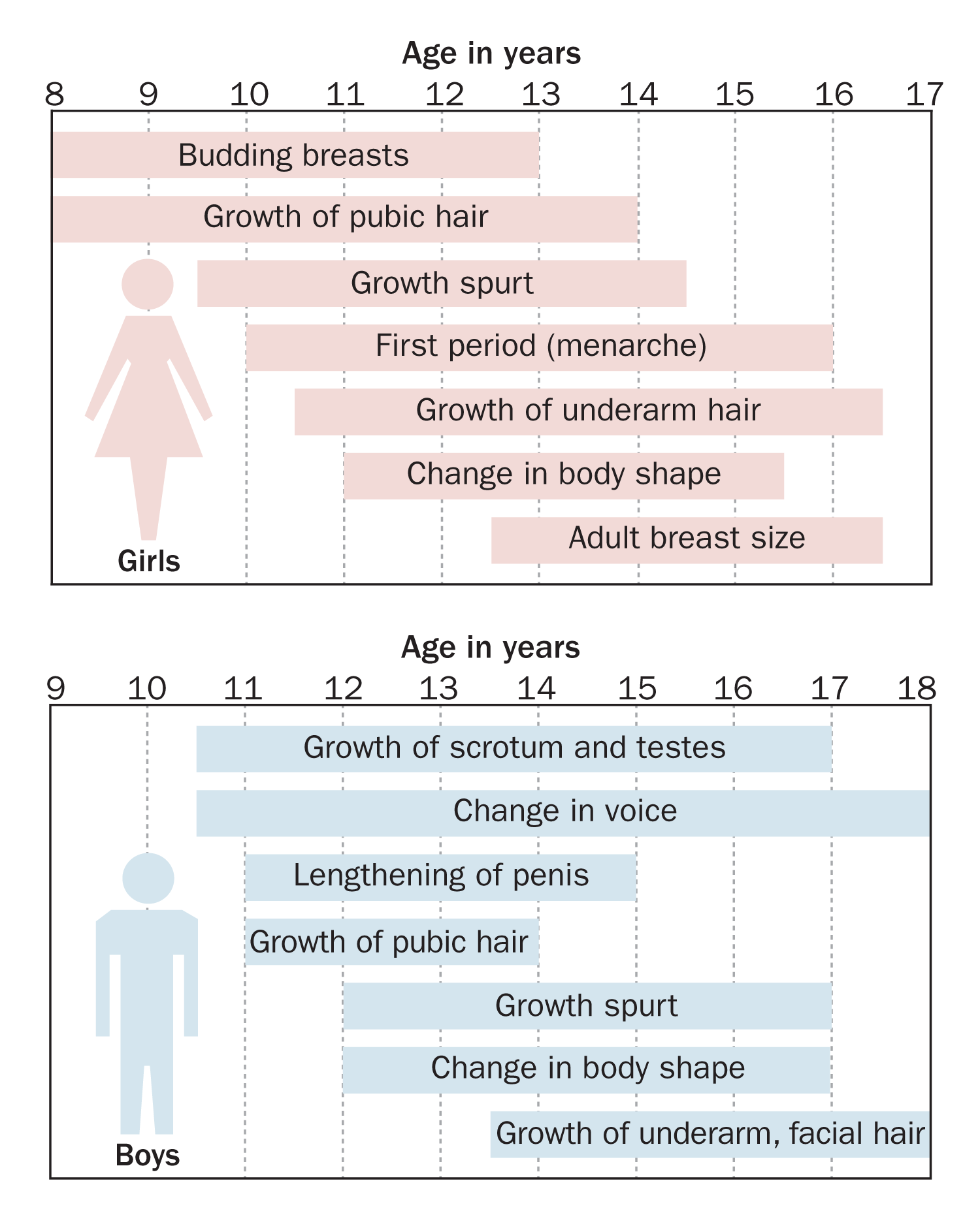 Questions about early puberty would be easier to answer if sexual development itself were better understood, says Patrick Chappell, who researches the molecular and cellular biology of sexual development at Oregon State University in Corvallis. Puberty occurs when a young body reaches some precise combination of genetic programming, metabolism and environmental stimuli, all of which correspond to a biological calendar set over the course of human evolution. The hormones involved in this transition have been well studied, but how exactly they are awakened is still unknown, he says.