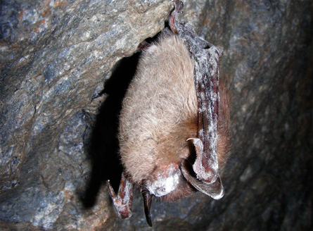 That fuzz increasingly looks like the cause of the disease, according to Frick. Infected bats develop lesions on their wings and rouse from hibernation too often and too early, possibly starving to death from burning through their fat reserves too fast.