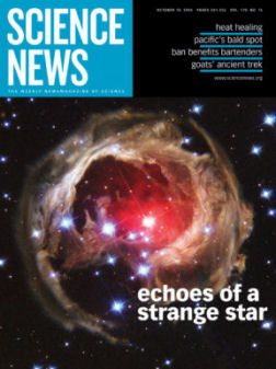 The amount of dust in the echoing region provides another way to discriminate between the models. If the dust is more than 10 times as great as the mass of the sun, it couldn’t have come from a young star, says Soker. Preliminary estimates suggest that the region contains 100 to 1,000 solar masses of material, he says.