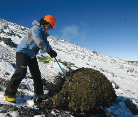 The type at Erebus is known as “phonolite.” To understand how it morphed from a primitive liquid rock into this evolved state, Oppenheimer’s team has been applying some forensic geochemistry to samples of the erupted rock and to gases bubbling from the lava lake.