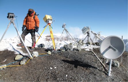 There’s no way to get around the weather in Antarctica. The field season at Erebus runs just the month of December, maybe a few weeks longer. Anyone who arrives much earlier or stays much later faces beastly cold and snowy conditions. And for half a year or more, there is too little light to fuel solar-powered equipment. It’s frustrating, Oppenheimer notes, to realize how much energy is being radiated from the lava lake — “and we’re not able to use any of it.” And howling winds for months on end are brutal on unattended gear.