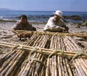 Bednarik’s technological explorations began in August 1997, when he directed 7 months of work on Nale Tasih 1, a 70-foot-long, 15-ton bamboo raft. It included two sails of woven palm leaves rigged on A-frame masts.