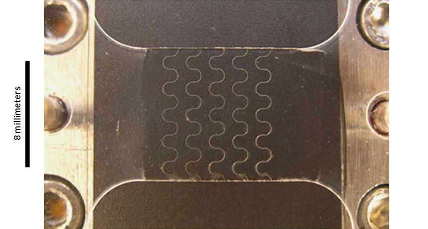 CRACK STOPPER Wavy lines etched into glass absorb energy, stopping cracks from busting through the brittle material.