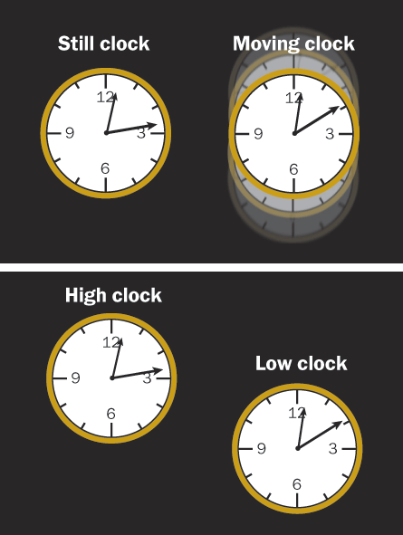 The experiments have more implications for precision instrumentation than they do for relativity, notes Chou. But they are a nice reminder that relativity is always at hand. “People tend to just ignore relativistic effects, but relativistic effects are everywhere,” he says. “Every day, people are moving; they are doing things like climbing stairs. It’s interesting to think about — are frequent flyers getting younger [because they move so much] or aging faster [because they spend so much time in the air]?”
