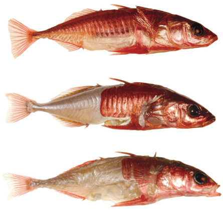 One promising candidate for an adaptation-turned-speciation gene is called ectodysplasin or eda. It’s one of a handful of genes that give rise to the stickleback’s extravagant armor. Ocean fish are covered in an array of plates and spines, looking something like swimming knights. Stream fish, which have a different eda version, are much smoother.