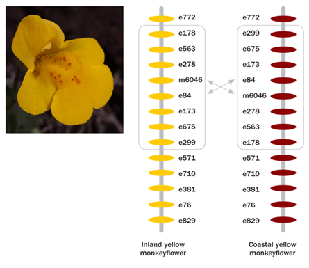 Inversions, like the spines of ocean sticklebacks, are good armor. Chromosomal flips keep the genes inside from getting traded to different chromosomes when organisms mate — important security since, like a good sports team, some combinations of players work best together. In the monkeyflower, for instance, genes that aid survival in inland soils probably pair well with genes underlying the live-fast-die-young lifestyle.