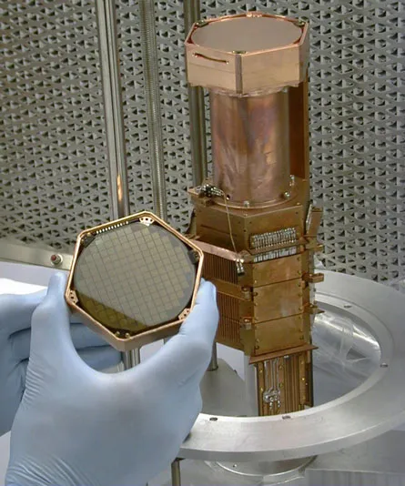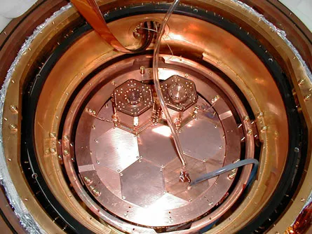 The experiment, called the Cryogenic Dark Matter Search, relies on 30 detectors made of germanium and silicon crystals cooled to just above absolute zero. The detectors record tiny vibrations imparted by a proposed type of dark matter called weakly interacting massive particles, or WIMPs. WIMPs streaming in from space would very rarely jostle the germanium nuclei, some 800 meters underground in the Soudan mine, generating a tiny amount of heat and slightly altering the charge on the detectors in a characteristic pattern.