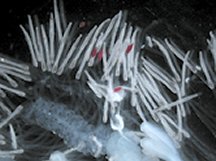 Scientists working in waters off California have captured deep-sea jellyfish relatives waving little spikes that glow red.