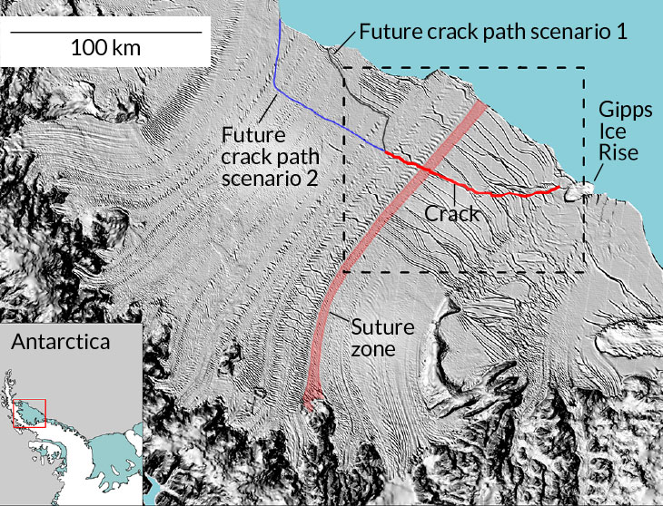 A better understanding of how and why the Larsen C crack expanded so quickly could help scientists better predict the future of all Antarctic ice shelves, says Richard Alley, a glaciologist at Penn State. “We live in a world now where the future of the ice sheet depends in part on fracturing mechanics.”