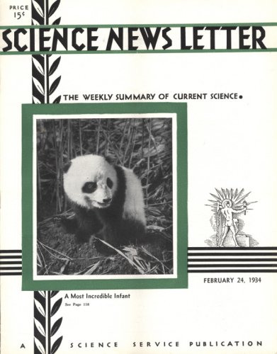 Rare among even the rarest of large wild animals is the giant panda, and rarer still is the sight of its young. Indeed, until the Dolan-West expedition of the Academy of Natural Sciences of Philadelphia penetrated to the home of these strange bear-like creatures that are not bears, in Szechuan Province, in the mountainous West of China, no white men had ever seen a panda cub. The expedition brought home the skins of a panda family group, adult male and female, and year-old cub; and these are now on view.