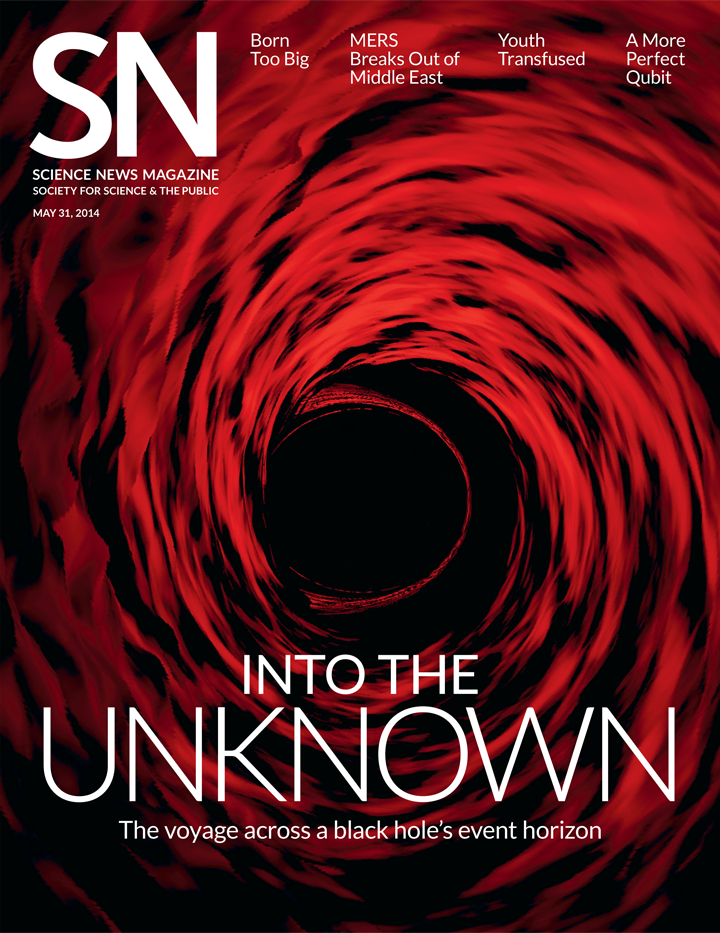Scientists disagree about what would happen to a hypothetical astronaut who floats past a black hole’s point of no return —whether the unlucky traveler would be flash-fried or stretched into oblivion. Andrew Grant chronicled the event horizon debate in “The mysterious boundary” (SN: 5/31/14, p.