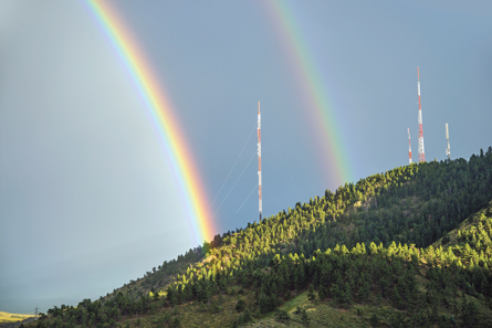 Sharp-eyed readers were quick to point out an interesting optical phenomenon in the image. “Not only does it show the full-circle double rainbow, the viewer can also discern that the outer bow has the spectrum colors reversed,” wrote Jean Parcher. “In most photos the second bow is too dim to see the reversal.”