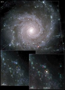 The researchers began their search for archived images of the star last June, after an amateur astronomer, using a backyard telescope, found a supernova in the galaxy M74, about 30 million light-years from Earth. As luck would have it, both the Hubble Space Telescope and the Gemini North Telescope on Hawaii’s Mauna Kea had imaged the original star less than a year before the supernova find. The images reveal that the red supergiant star was about 8 times as massive as the sun, which is near the low end of what theory predicts for the mass of stars that can flame out in a supernova.