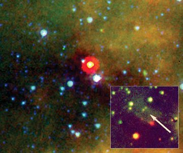 Viewed previously by visible-light telescopes and a now-defunct infrared satellite, the core of dust and gas known as L1014 looked completely dark. Last December, however, Evans and his collaborators trained the newly launched Spitzer on the core to investigate conditions that might set the stage for star formation. To their surprise, the researchers detected a glimmer that Evans likens to “a big, red, bloodshot eye.” The infrared light is probably generated by dust heated by an energetic object in the core, the team reports in a September supplement of the Astrophysical Journal.