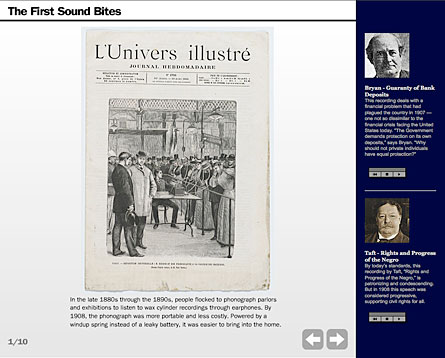 “The year 1908 marked the first time Bryan had run for the presidency since the phonograph had become a common household object and since the mass production of phonograph cylinders had become practical,” says Feaster.
