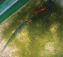 Three-spined sticklebacks (Gasterosteous aculeatus) live in temperate waters worldwide and build nests with varied architecture. On the Swedish coast, Östlund-Nilsson and Mikael Holmlund of Stockholm saw males tending nests of greenish algae that often had around the entrance several strands of red algae or of dead algae that had turned orange. The researchers had planned to study camouflage but became interested in learning why males incorporate bright accent colors if given the chance.