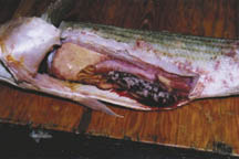 However, Overton’s data show that the unsightly lesions–which can heal and scar over-mark only a fraction of infected fish. Among the bay’s adults, he now finds that “almost 50 percent exhibit [internal mycobacterial] nodules.”
