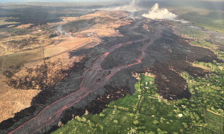 On May 13, lava suddenly exploded from a new fissure along the lower East Rift Zone. “There was this really loud banging that sounded like cannon shots,” says Christoph Kern, a geochemist at the USGS Cascades Volcano Observatory in Vancouver, Wash. Kern was working in the rift zone at the time.