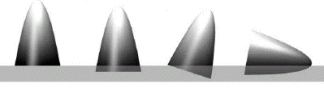 A paraboloid is a solid, cone-shaped object with a rounded nose and a flat base (above). Its base is either circular or elliptic, and a cross section at right angles to the base has the form of a parabola. When the base is at right angles to the axis of symmetry, the shape is called a right paraboloid.