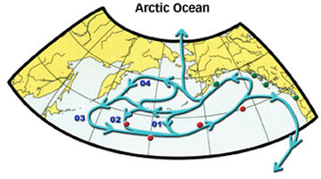 Results of computer simulations indicate that floating objects can be swept along several paths in the Pacific Subarctic Gyre, Ebbesmeyer and his colleagues noted in the Jan. 2 Eos. The easternmost portions of all routes flow north along the Alaskan panhandle and then turn west to skirt the state’s southern coast. Items following the shortest route, a 7,400-km loop, are carried a little more than halfway out the chain of Aleutian Islands before they are swept back to the West Coast.