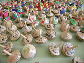 Detailed information about the release of wooden tops off Japan in 2005 and 2006 can be found at http://www.gondo.com/g-files/koma/page_1.htm. For a close look at one of the tops, see the image below.