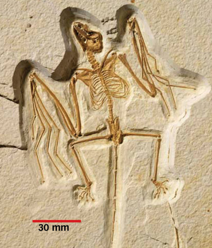 Fossils of a cardinal-sized creature recently unearthed in western Wyoming suggest that primitive bats developed the ability to fly before they could track their prey with biological sonar.