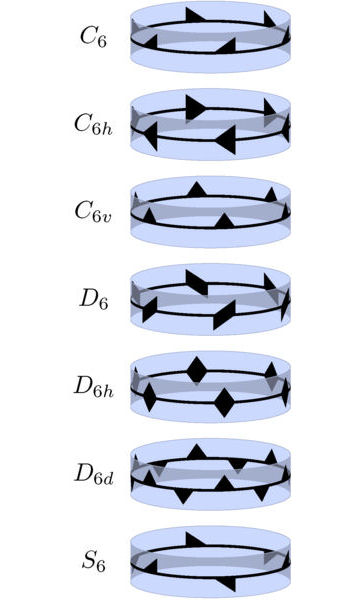 Three-dimensional objects can be symmetrical in a variety of ways. Mathematicians have identified all of the different symmetry groups that such objects can have. The two most basic kinds of symmetry are “reflective” and “rotational.”