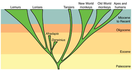Afradapis and other adapiforms independently evolved some traits that later appeared in anthropoids, probably because they competed with anthropoids for access to fruit in dense African forests, Seiffert hypothesizes.