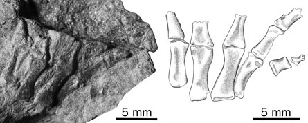 “This is the earliest and smallest foot ever found with five digits,” says paleontologist Jennifer Clack of the University of Cambridge, England. “It tells us that terrestrialization occurred much earlier than we had a hint of before.” Feet with five toes tend to be good at bearing weight and rotating on land, she says.